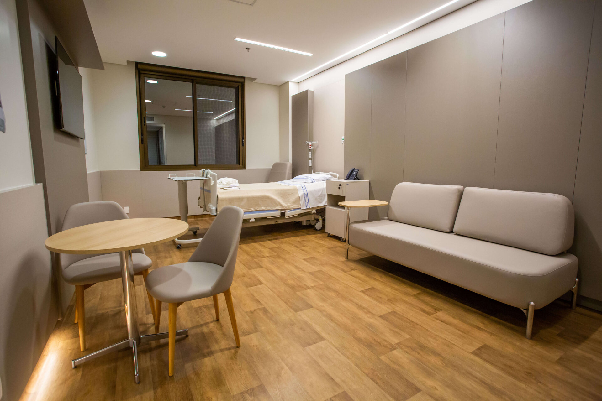 As unidades de internação do Hospital Nora Teixeira foram cuidadosamente concebidas para proporcionar a melhor experiência aos nossos pacientes. Com ambiência exclusiva e modernos recursos arquitetônicos, são seis amplos andares que asseguram o máximo conforto e privacidade, respeitando rígidos critérios de segurança e sustentabilidade ambiental. As acomodações incluem quartos privativos, semi-privativos e suítes masters, todos planejados para garantir bem-estar, comodidade e tranquilidade durante a internação.